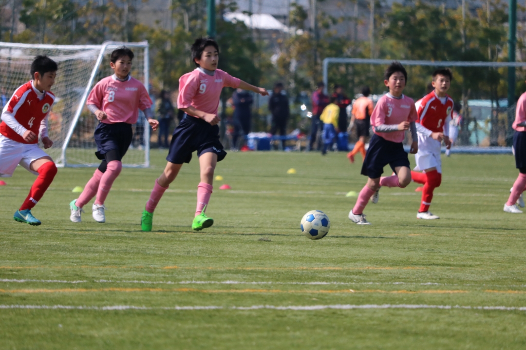 まだ肌寒い中、島原市営平成町人口芝グラウンドで、3年の部から6年の部の各、組合せによる30・24分ゲームが開催されました。