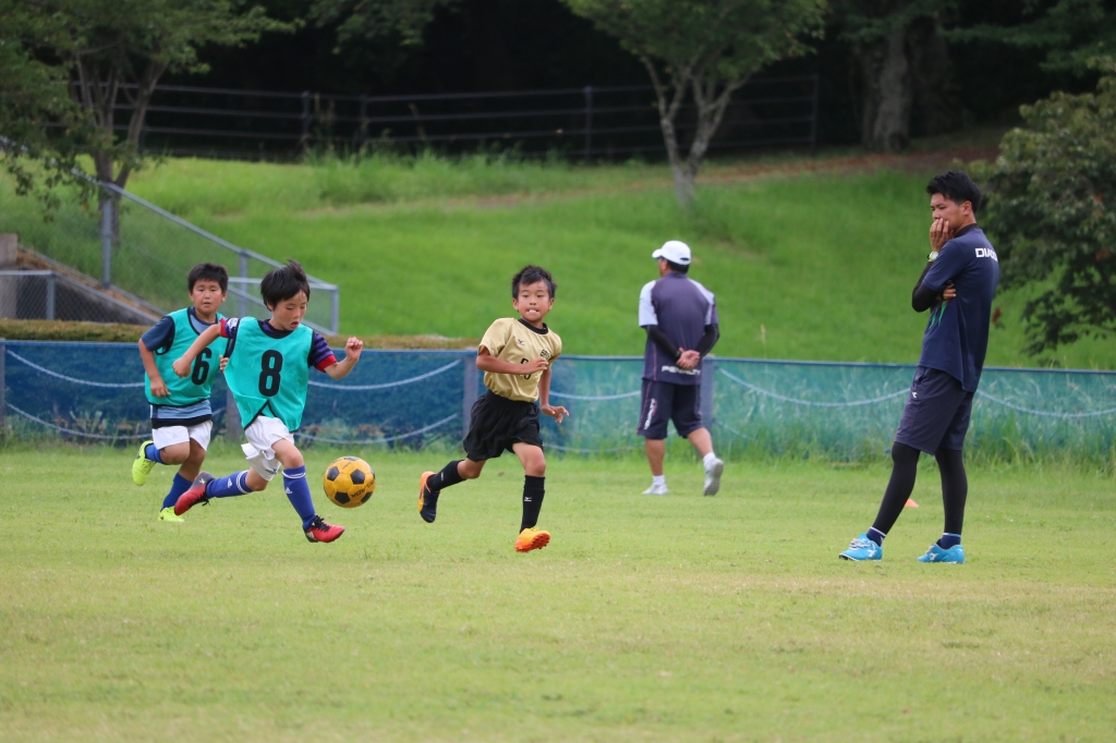 8月の暑い中行われました。休憩タイムではみんな給水したり、汗をタオルふきながら一生懸命プレイしてました。
